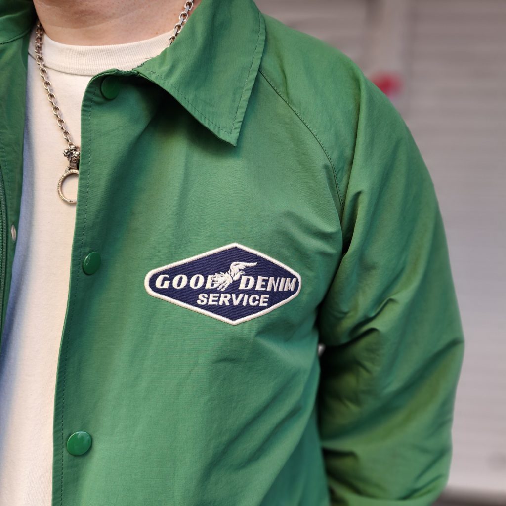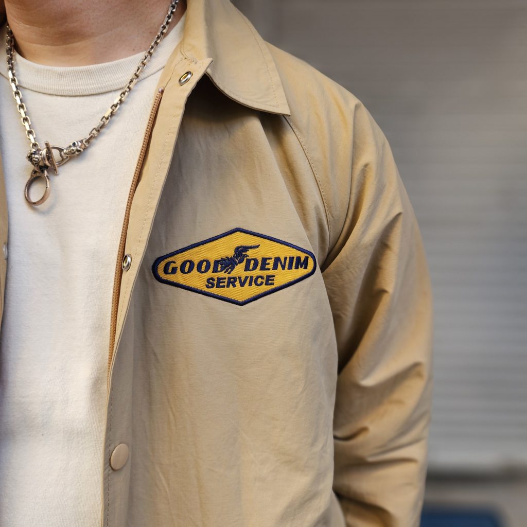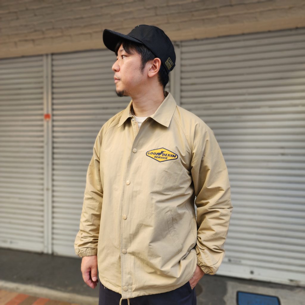ロクヨンクロスはマウンテンパーカーなどにも使用される、通気性と撥水性を持ち合わせたタフな生地です。いつものコーチジャケットよりもアームホールなど、ややゆったりとした着用感で今どきのスタイルにもフィットします。