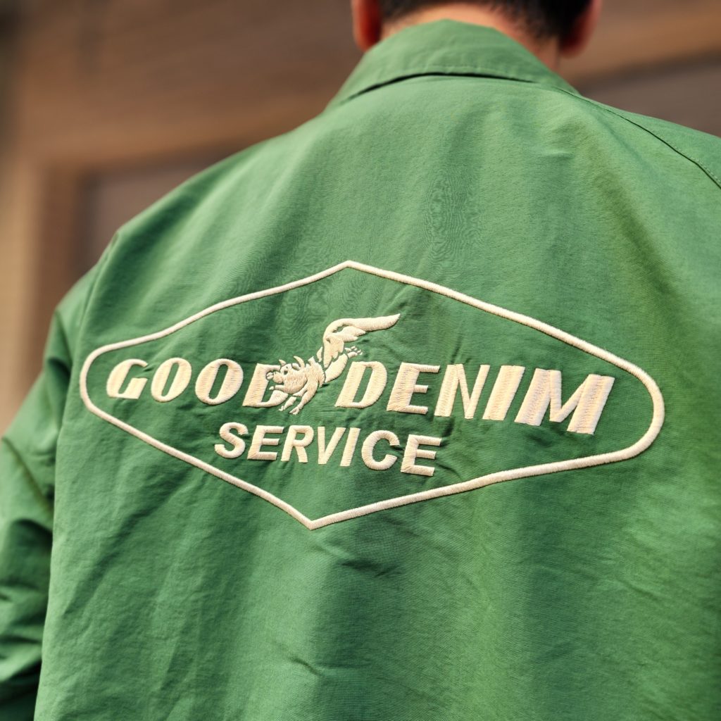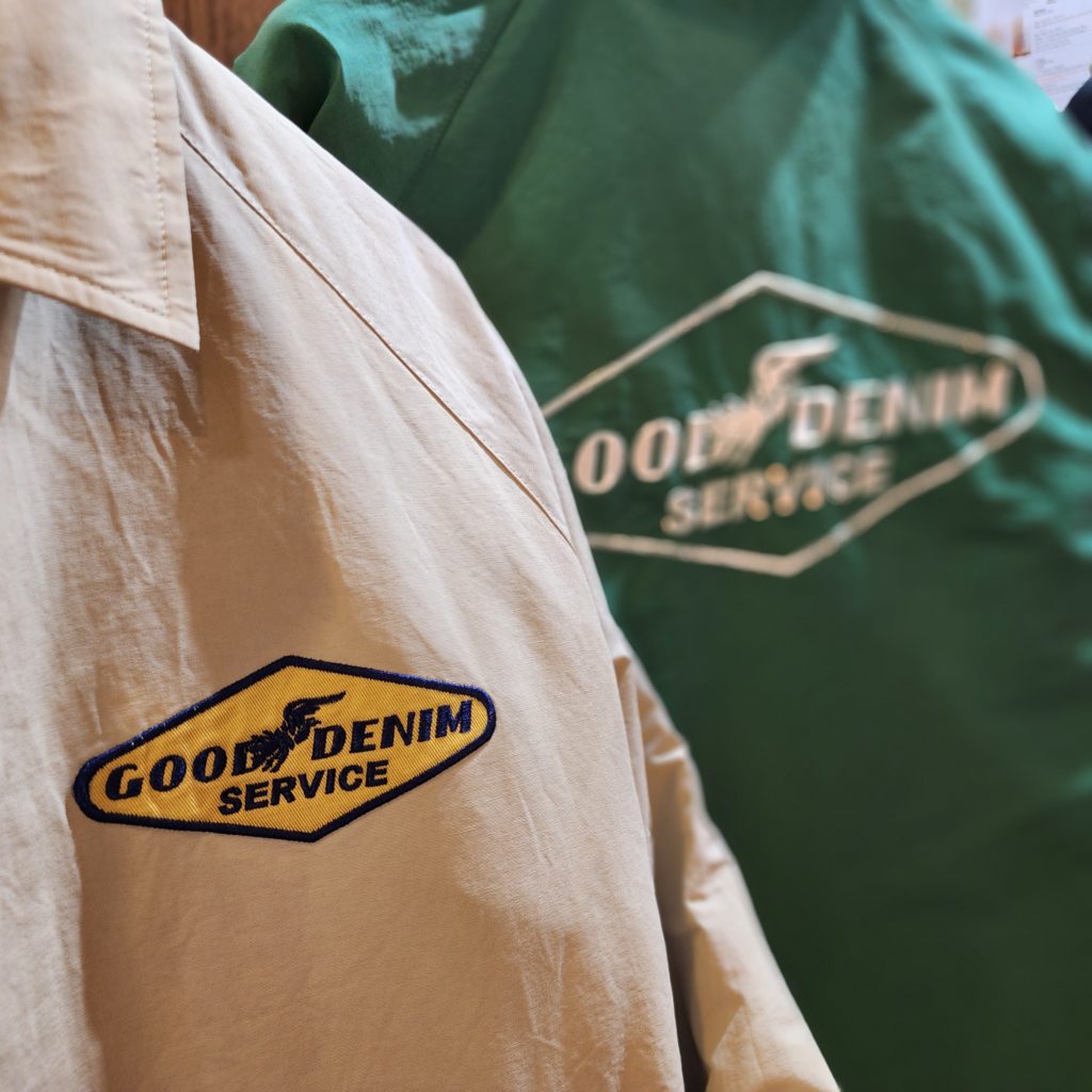 左胸にワンポイント、背面には大きく刺繍ワッペンが配置されています。タイヤメーカー彷彿とさせるようなロゴに、ブランドマスコットのブタがデザインに取り入れられた、ユニークな仕上がりです。