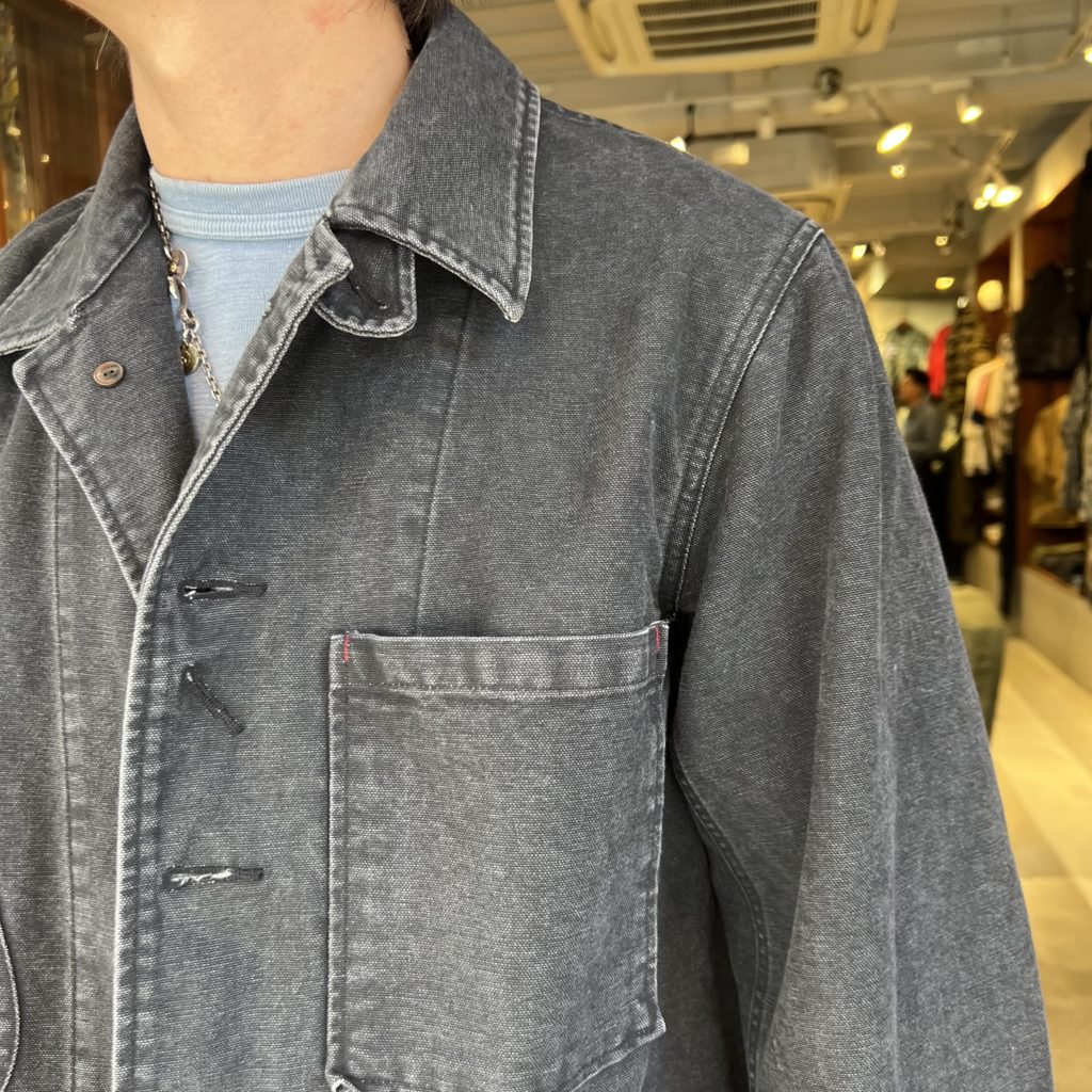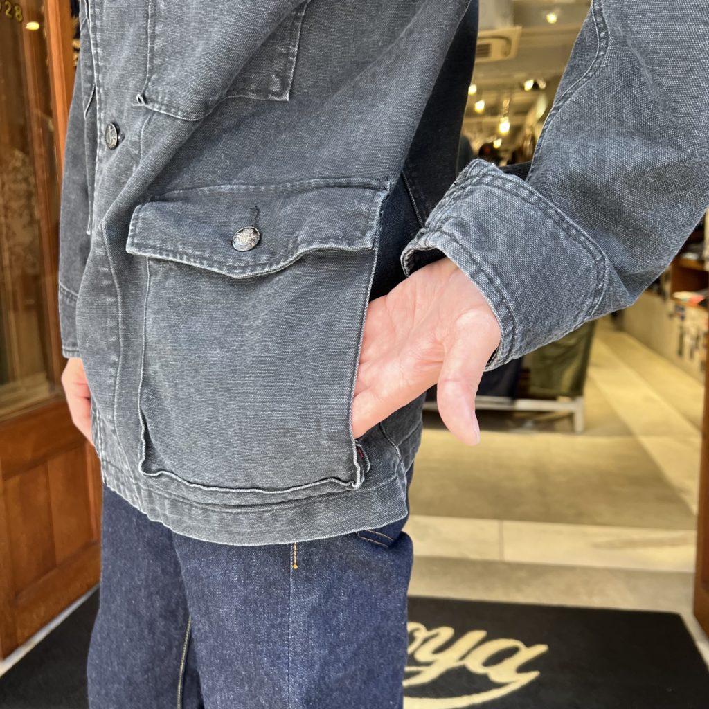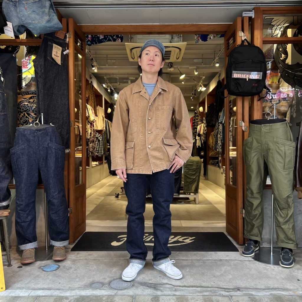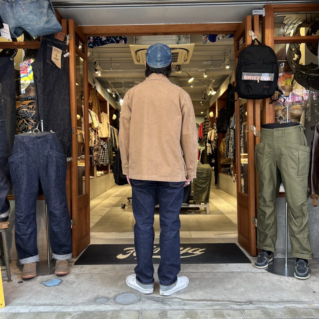 加工に近いハードウォッシュがかかっている為、生地に味もあり、着込む事により深い経年変化を楽しめますね。