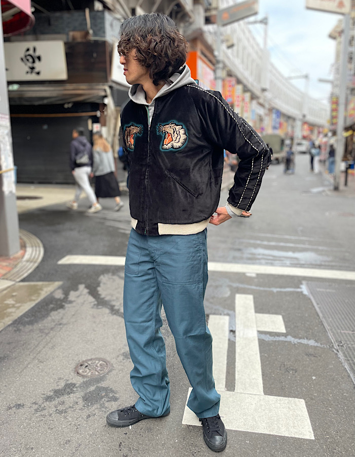 スカジャンと合わせてもスカジャンに負けない存在感があるパンツです。ぜひ店頭で良さを感じてください。