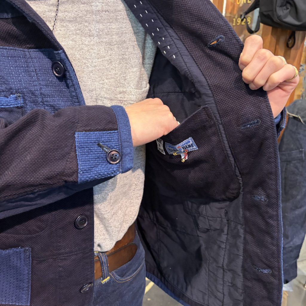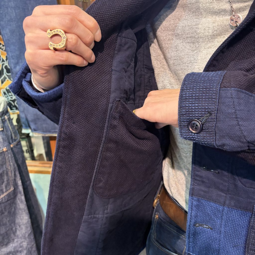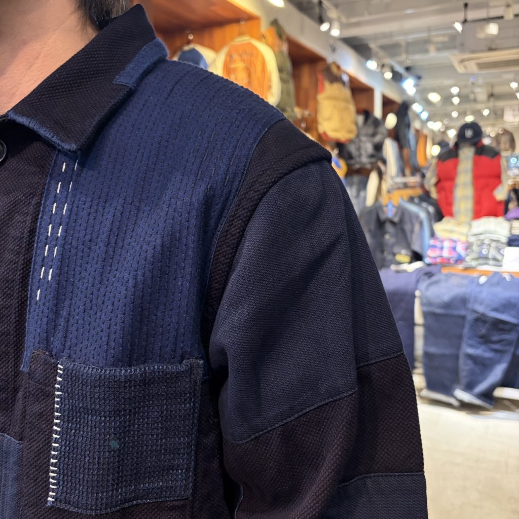 BLUE BLUE JAPANの数ある刺し子シリーズの中でも、特に象徴的な刺し子素材を使用した、頑丈でありながら柔らかさも備えているモデル。