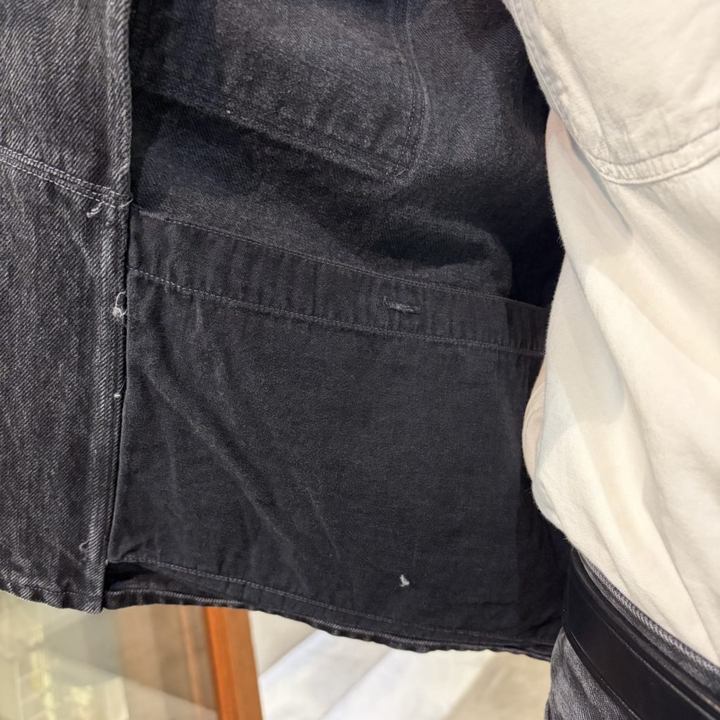 ワークウェアならではのトリプルステッチ仕様。
