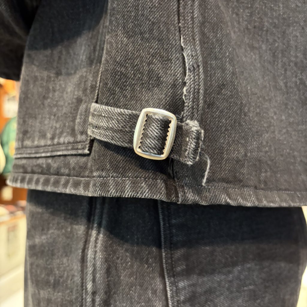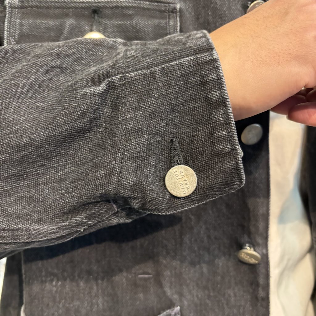OLD JOEのクロップド・エンジニアジャケット。ショート丈と大きめラペルの組み合わせが、クラシックながらも新鮮でユニークな印象を受けますね。