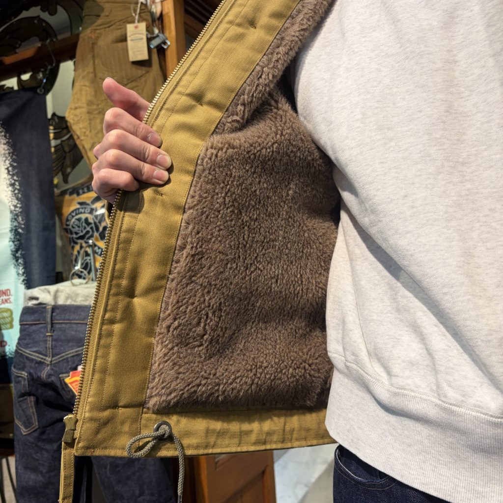 表素材には他のデッキジャケット同様に通常“ジャングルクロス”と呼ばれるコットングログランが使用され、胸元にはステンシルが付いています。