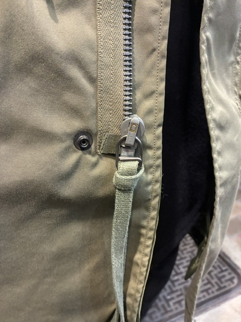 通称“フィッシュテール”と呼ばれる背中の裾が燕尾服の様に切り込みが入っている仕様はM-51パーカーから継承されており、これは前身頃と後身頃の裾から出たコードを股の下で結び、暖かい空気を密閉する為であった。