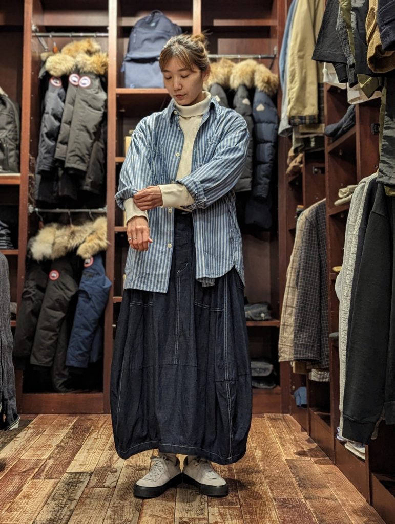 丈は少し長めの作りなので、タックインしてます。