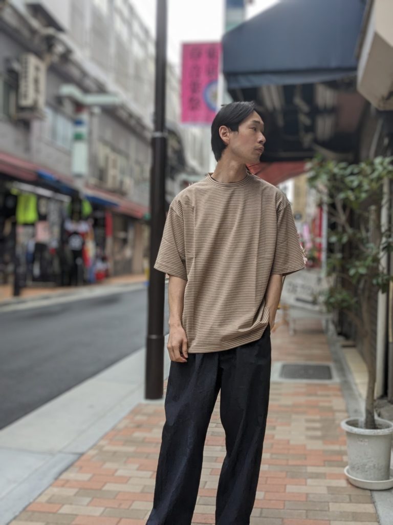 幅広な襟ぐりのリブと、身幅ゆったりのシルエットで、ゆるっとしつつだらし無くならない絶妙なバランスです。