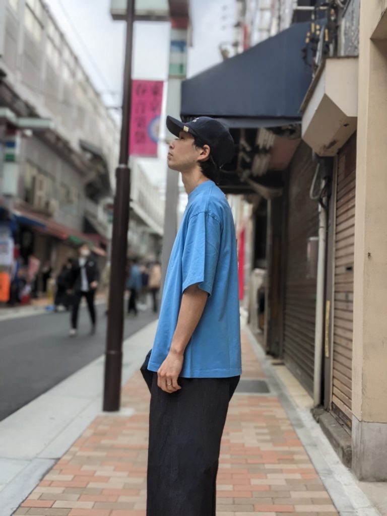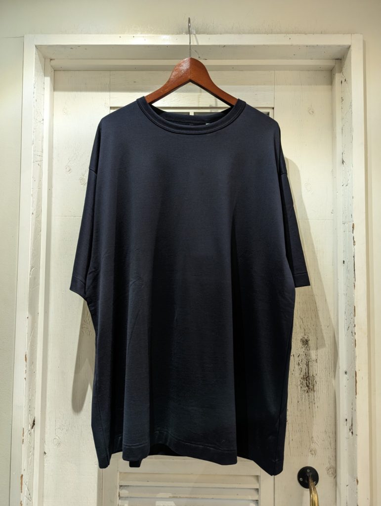濃紺の深い色味が光沢感をより一層感じさせ、上品さすら感じるTシャツとなっています。