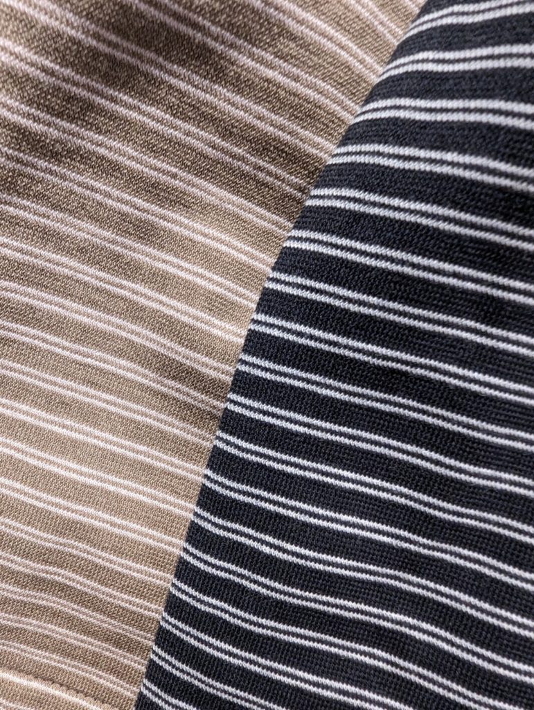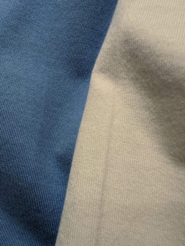 異なる種類の強撚糸同士を引き揃え、度目を詰めて編み立てたハイツイスト・コットン天竺素材。