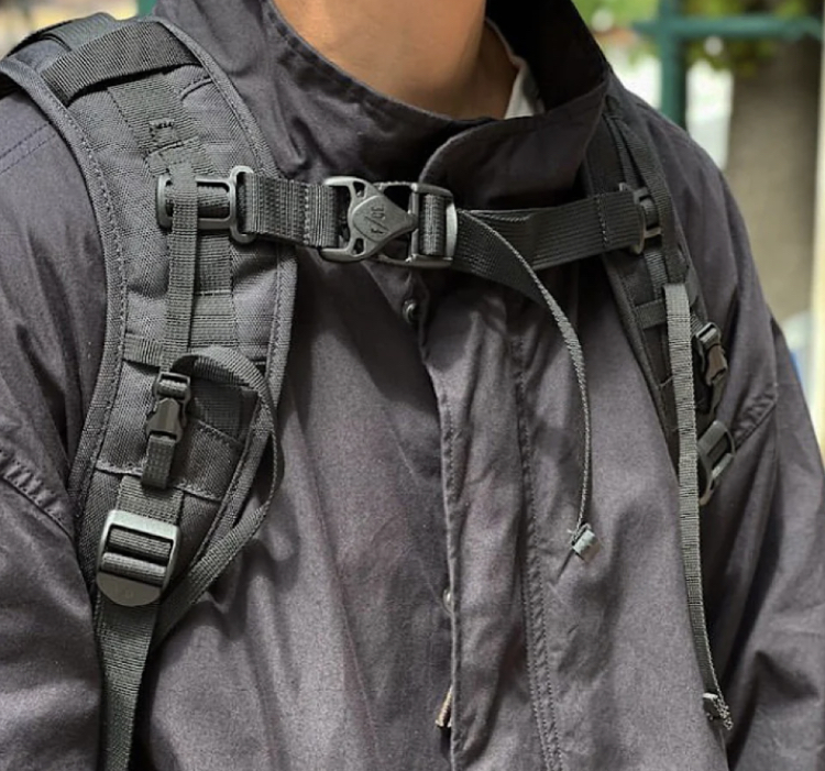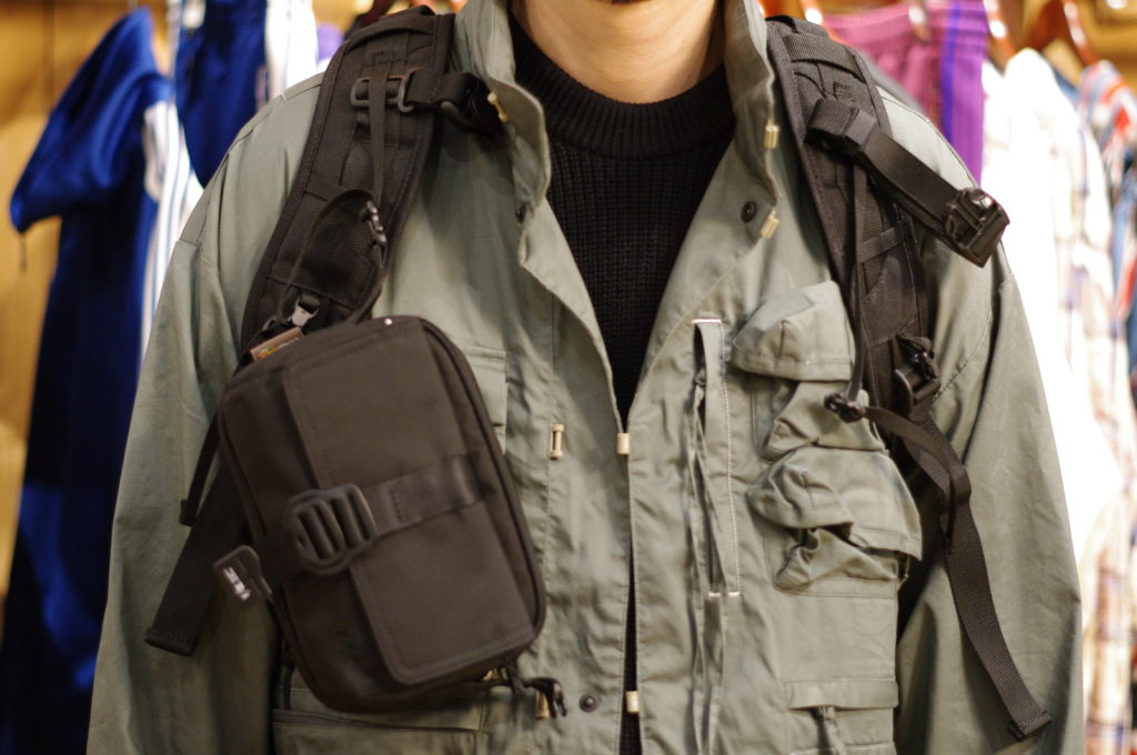 ショルダーにはサコッシュや、ポーチなど取り付けられるMOUNTING T SYSTEMを搭載。