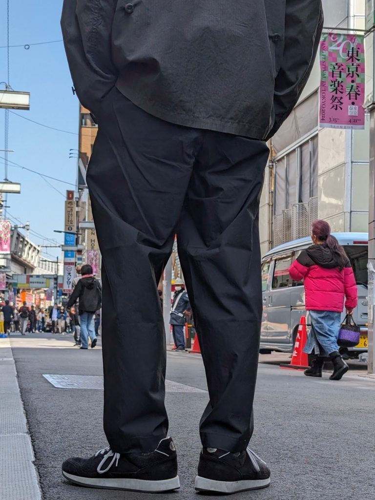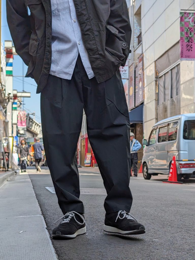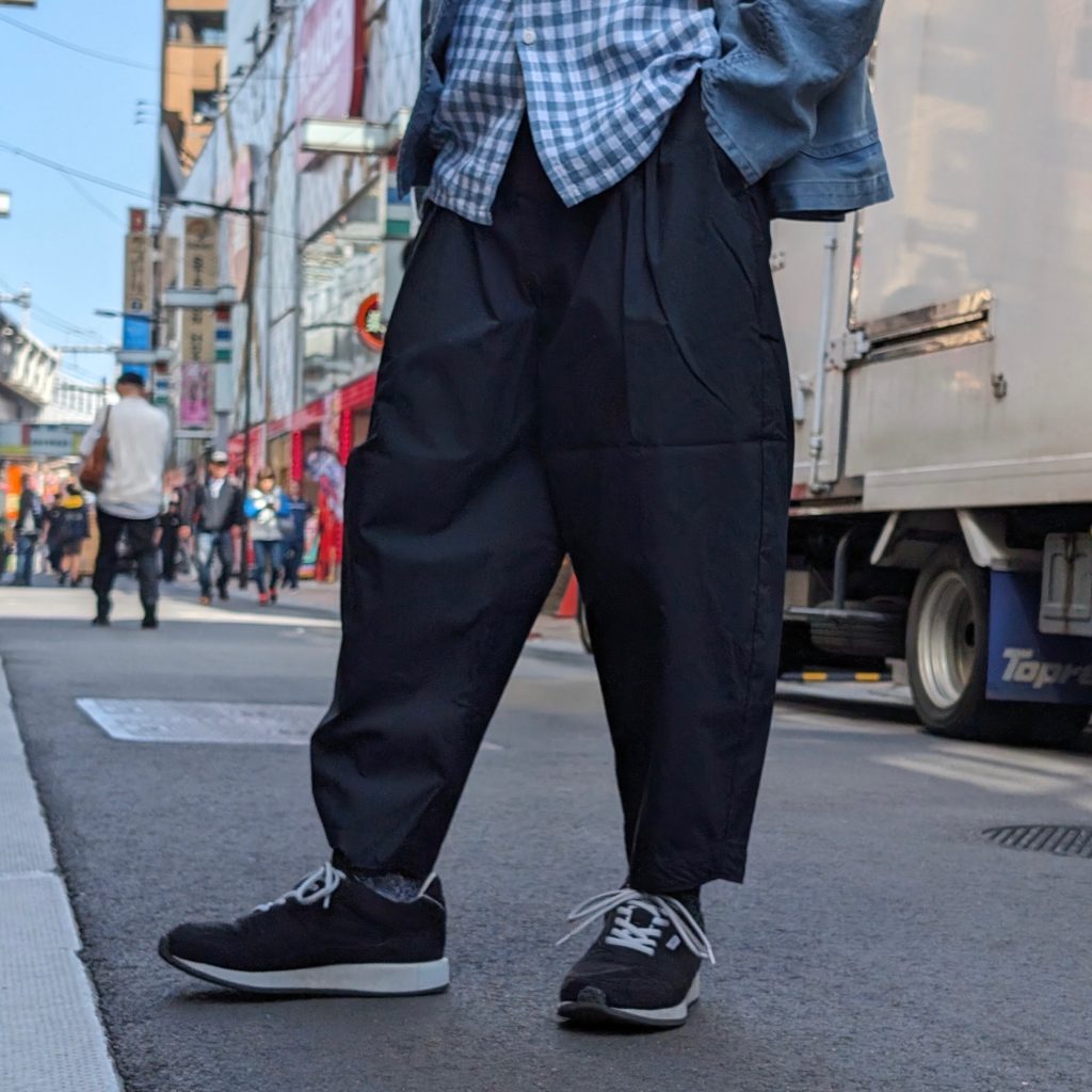 ワンサイズほど大きめのサイズで履いてベルトで縛って履くとよりこのパンツの良さが引き出せると思います!
