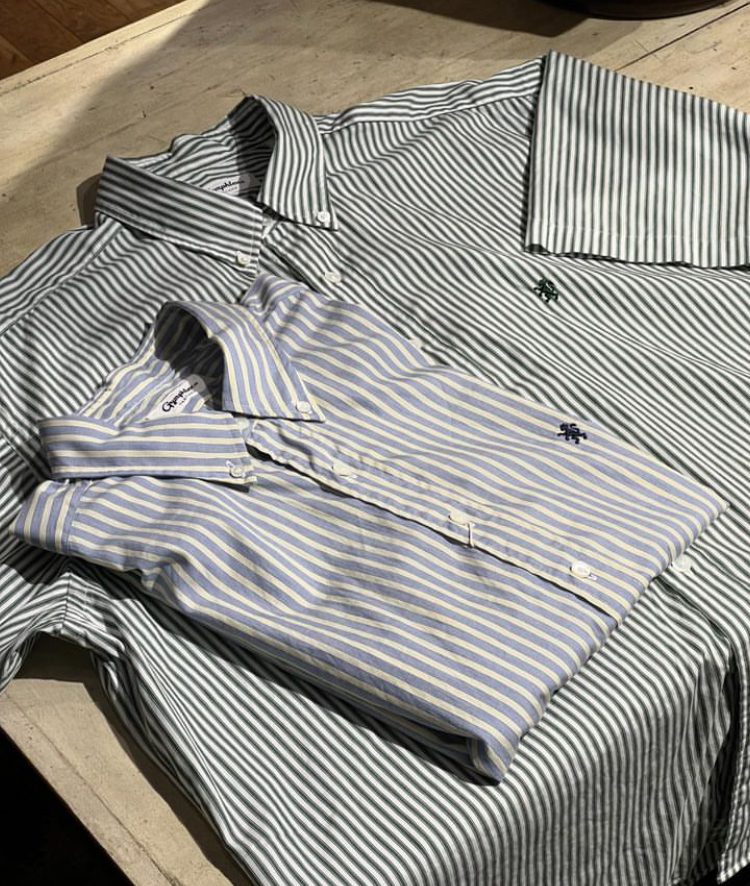ストライプ柄のピッチや色糸で変化を付け、単調にならない柄行が特徴。密度高く織りあげた滑らかなコットン100%生地は柔らかく着心地も最高です。
