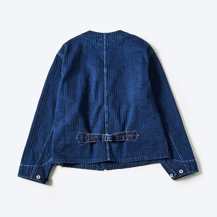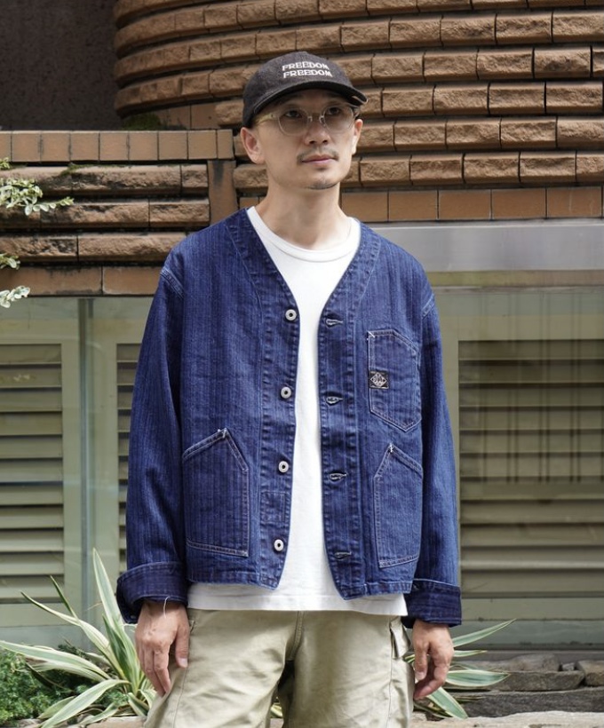 今再びタイムリーなストーカージャケットの2024FWバージョンは、ヘリンボーン・デニムで展開。今まで何度かリリースされてきたヘリンボーン・デニムですが、ホワイトステッチとの組み合わせは今回が初めてで、ディープなトーンと相まって新しいムードを醸し出しています。