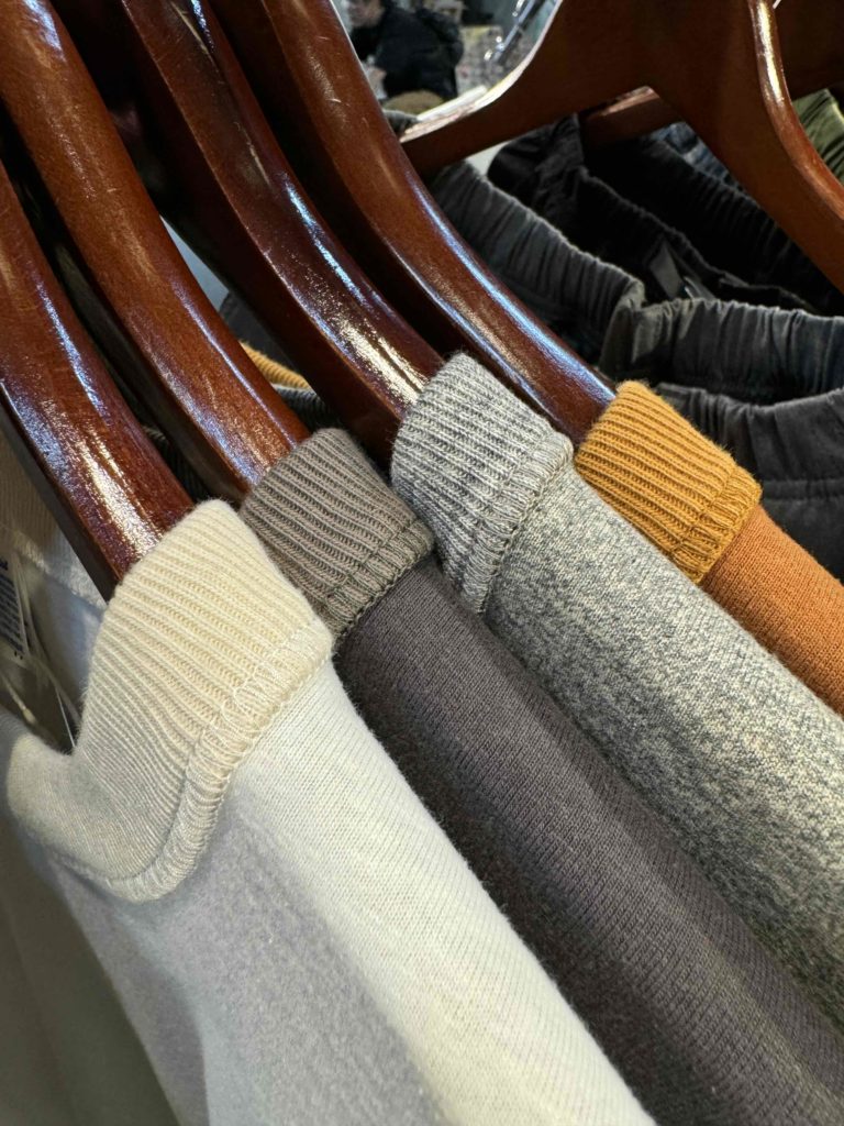 糸の開発や編機、生地の選定、加工手法、アイテムディティールにこだわりを持ち、質の高い製品ラインナップを展開します。