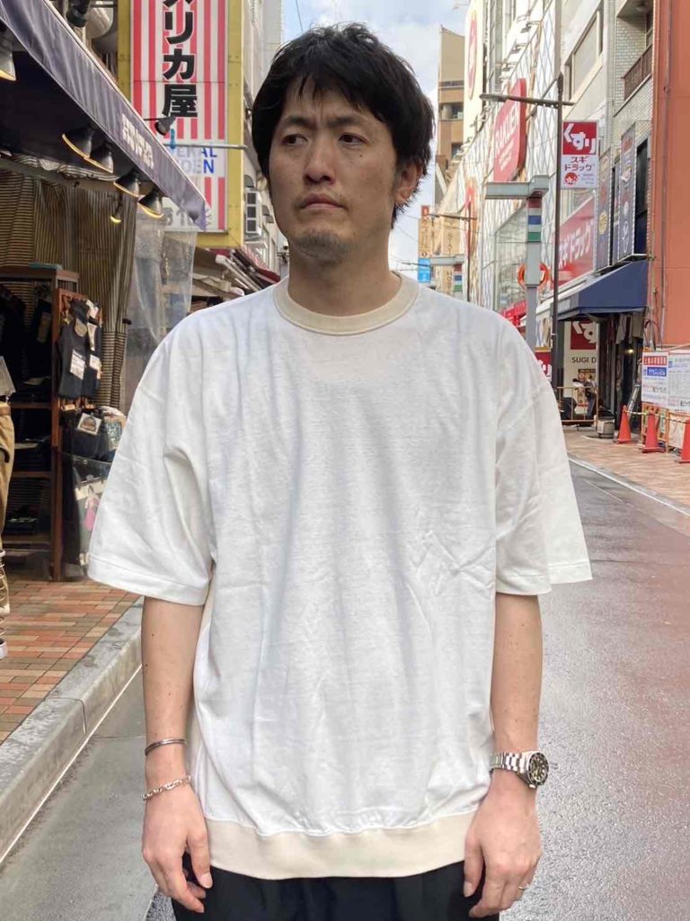 ゆったりとしたサイズ感で重ね着もし易く、幅広い着こなしが可能な1枚です。