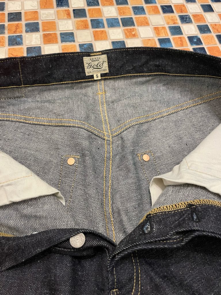 コインポケット口やサイドシームのセルビッチ使い、隠しリベット付きのディテールや縫製仕様もヴィンテージ同様です。