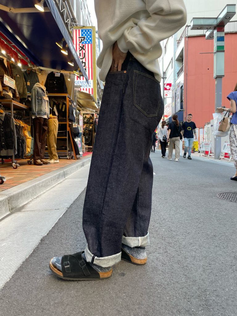 シルエットは腰周りやワタリを広めに設定したワイドストレートモデルです。