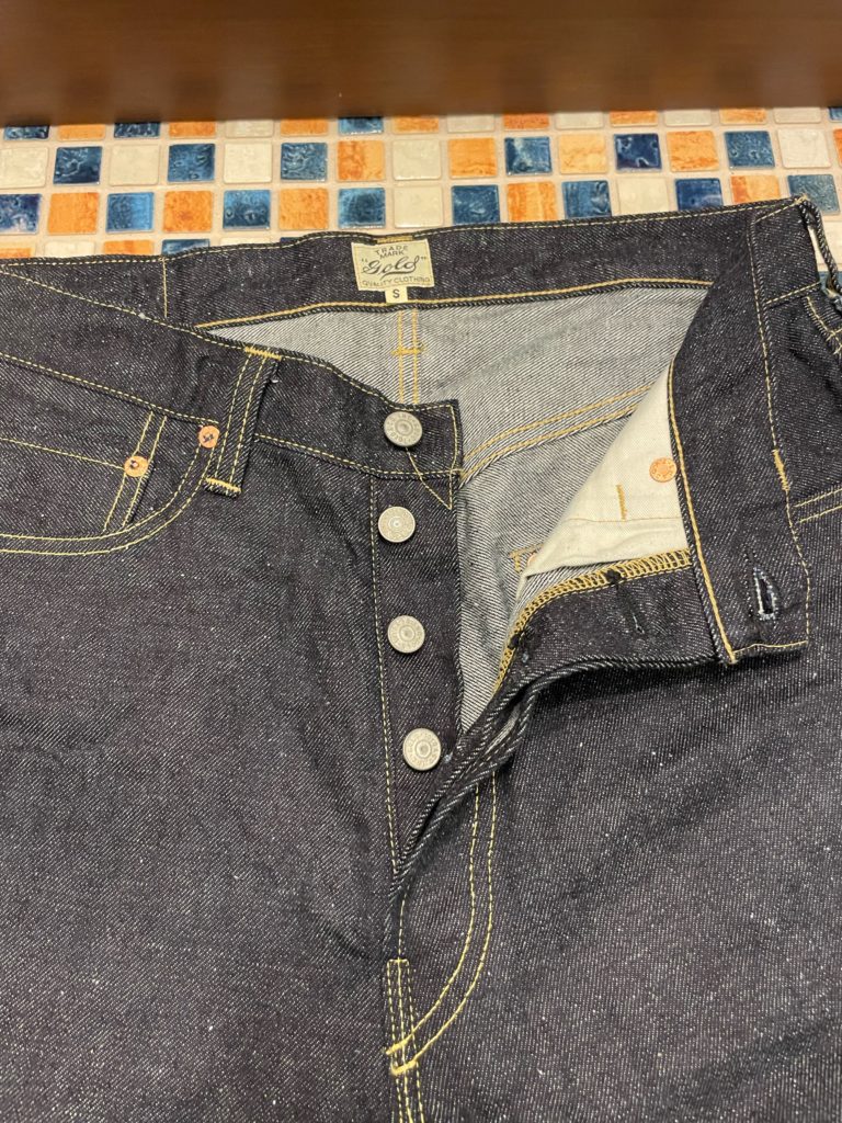 GOLDの定番アイテム、11.5oz 5ポケットワイドデニムパンツ。