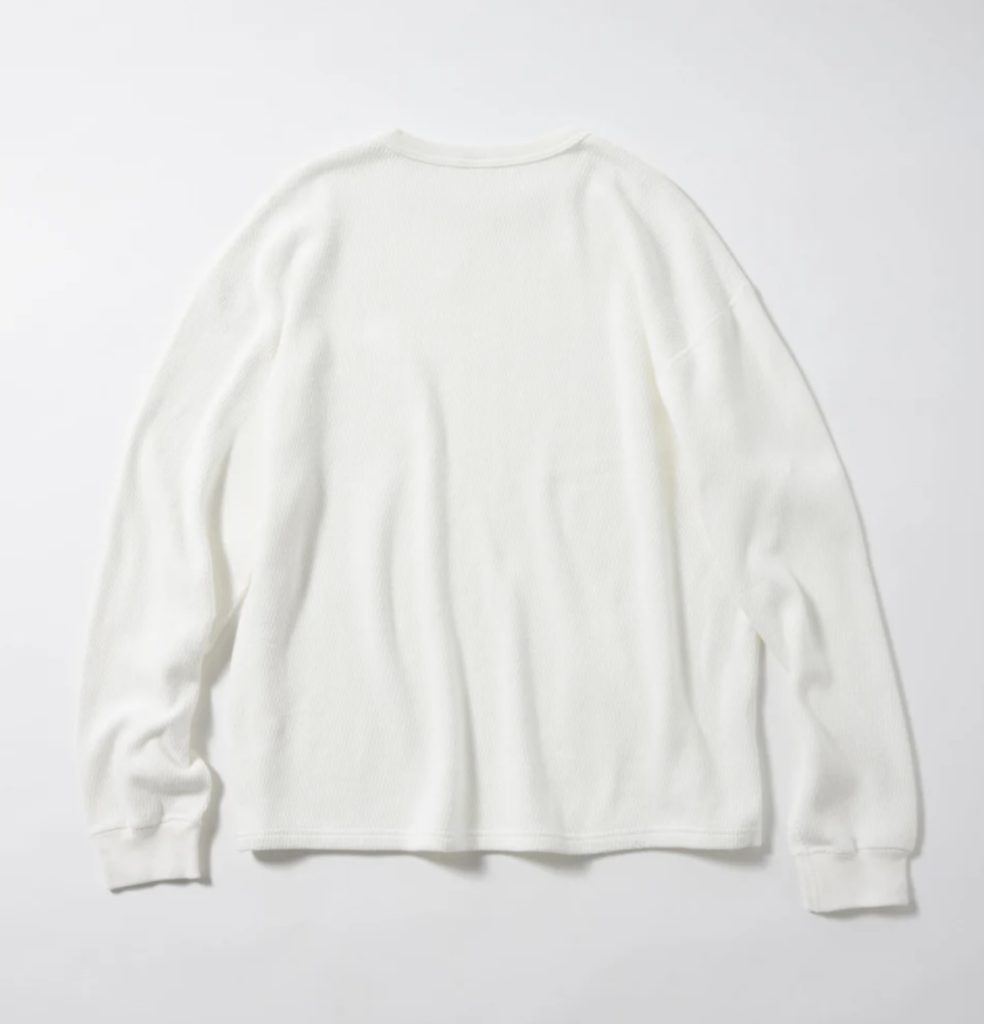 レギュラーシルエットのロングスリーブTシャツは、軍サーマルらしくフラットマシーン(4本針)の縫製仕様を採用しています。