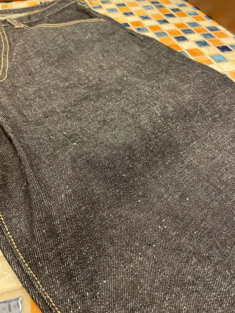 生地は、短いワタや羽毛を削ぎ落とす工程で落ちた超長綿の最高級スビン綿と通常のスビン綿を混ぜて作ったオリジナルのデニム生地です。