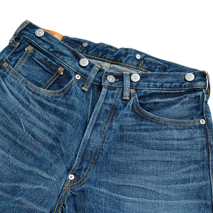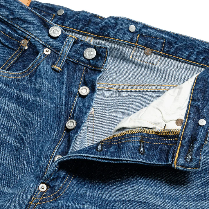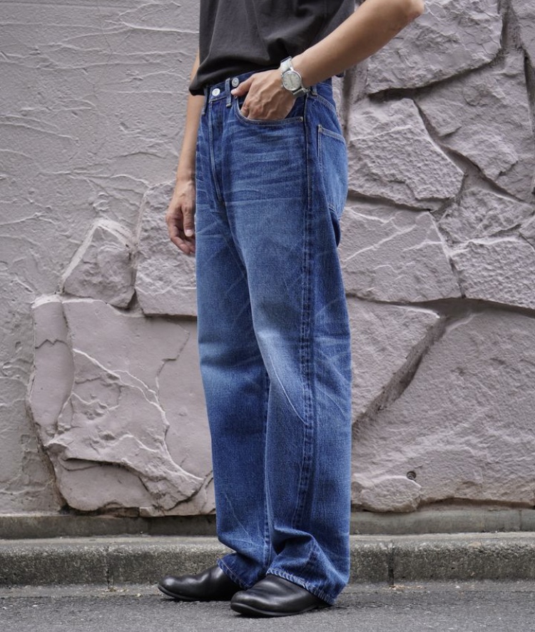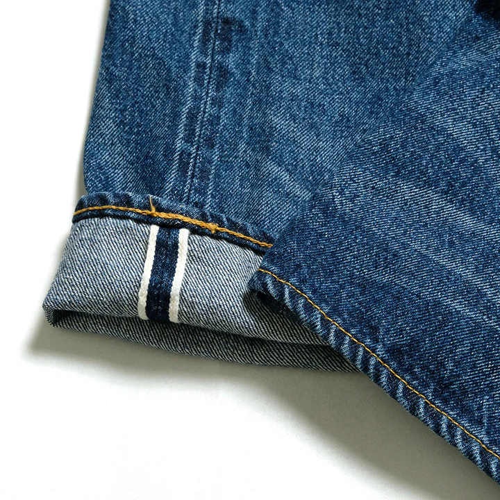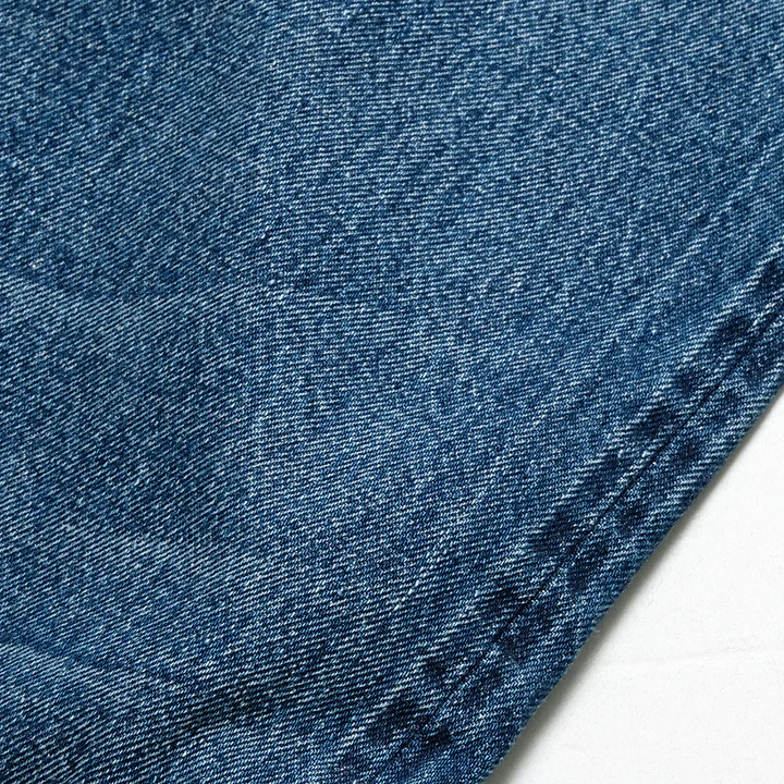 上質なサンフォーキン・コットンを原料に特殊な紡績方法を用い、ナチュラルネップを混ぜながらピュア・インディゴで染め上げた13.5ozセルビッチデニム。旧式織機にてローテンションでゆっくりと織り上げている為、味わい深い凹凸感も特徴です。