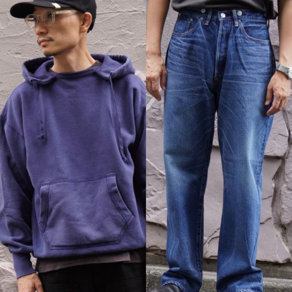 特殊染料にて製品染めを施しヴィンテージのような風合いに仕上げています。