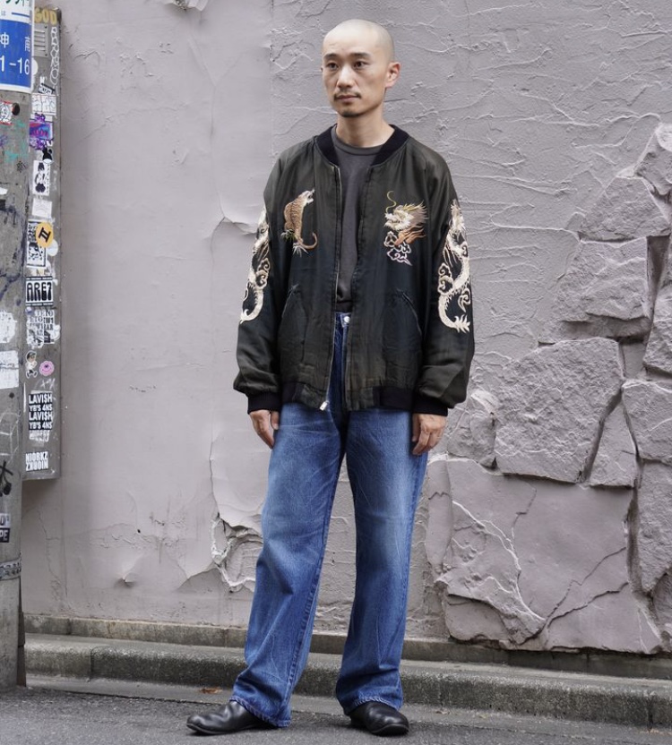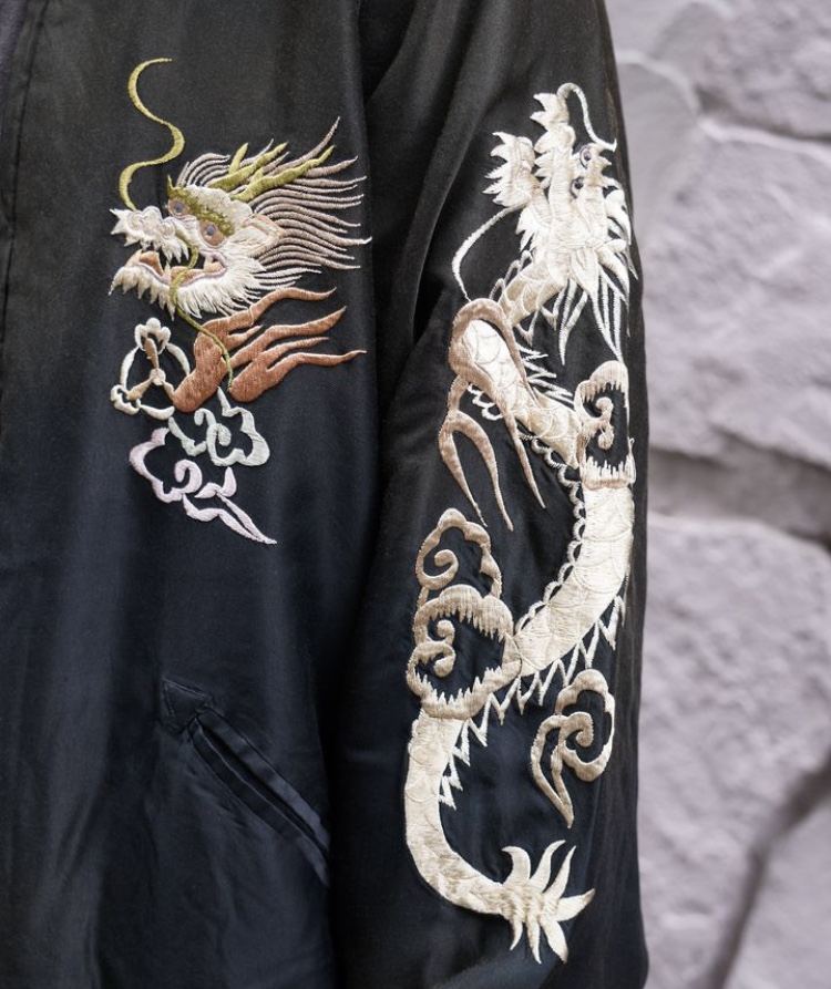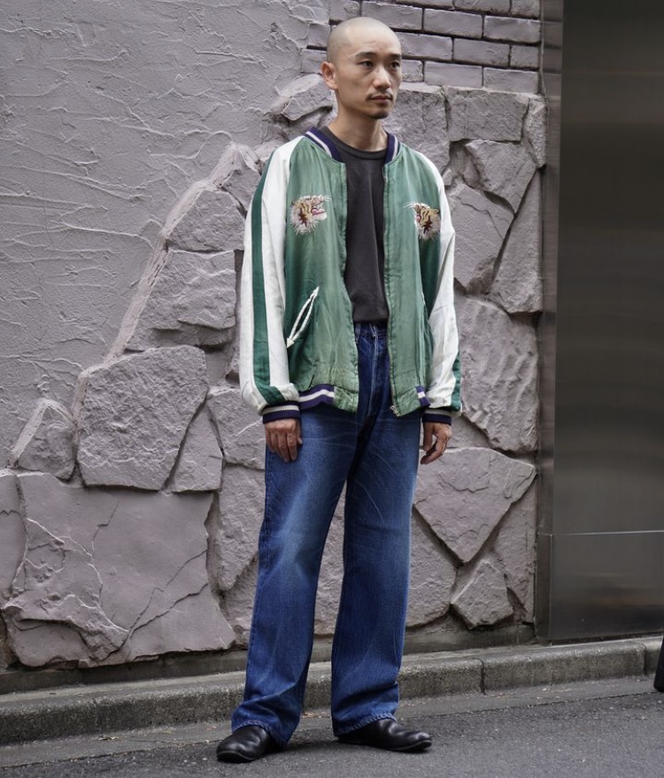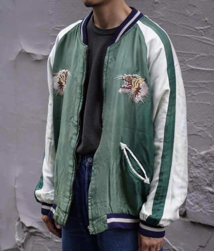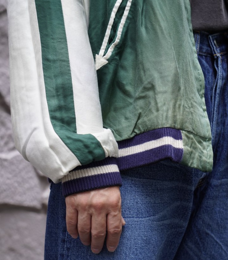 ヴィンテージのスカジャンをもとに日焼けや褪色を加工で表現している。