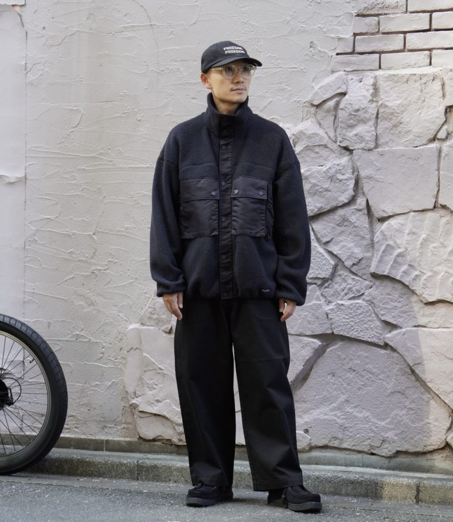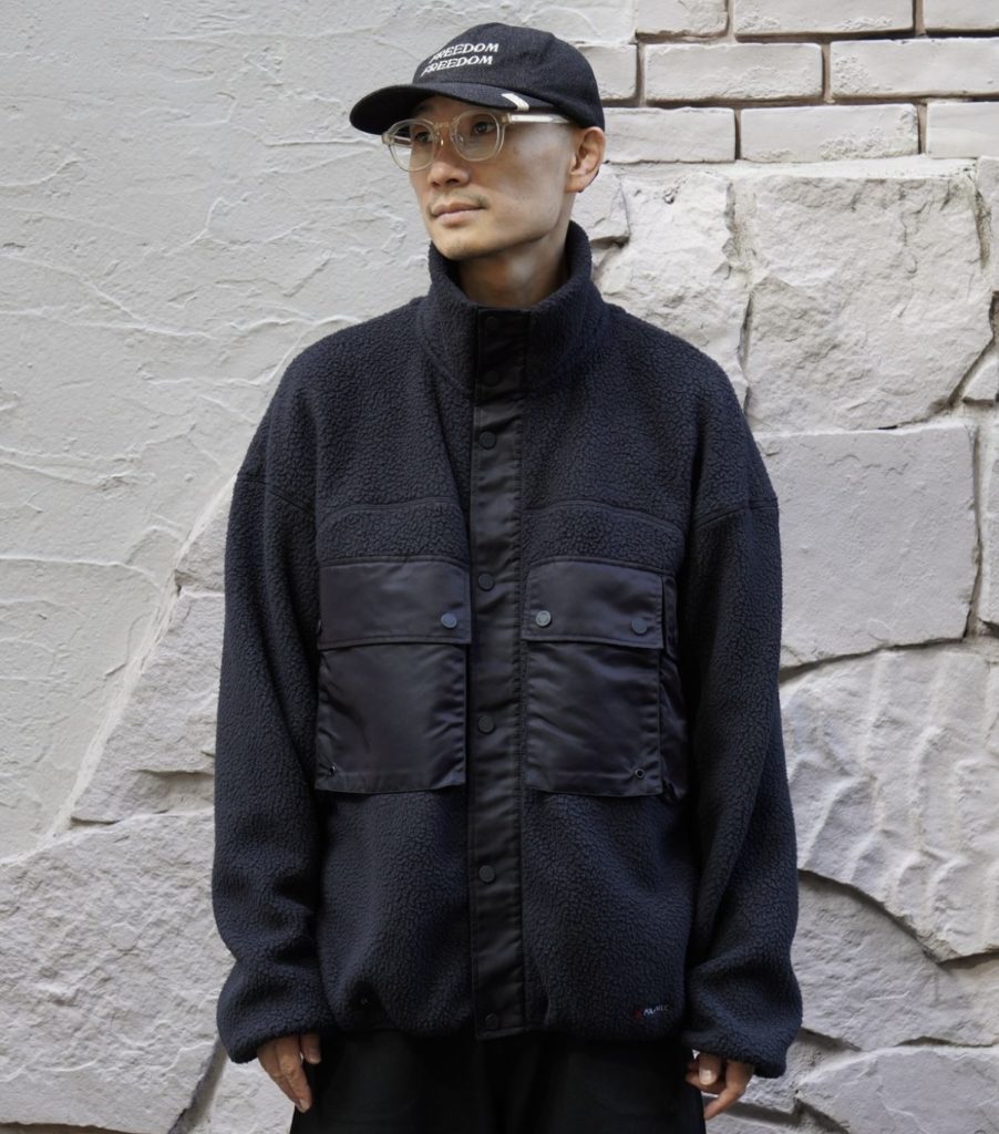 POLARTECフリースを使用したスタンドカラーのボアジャケット。