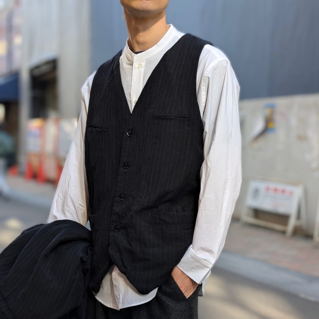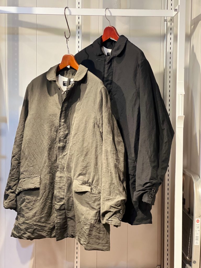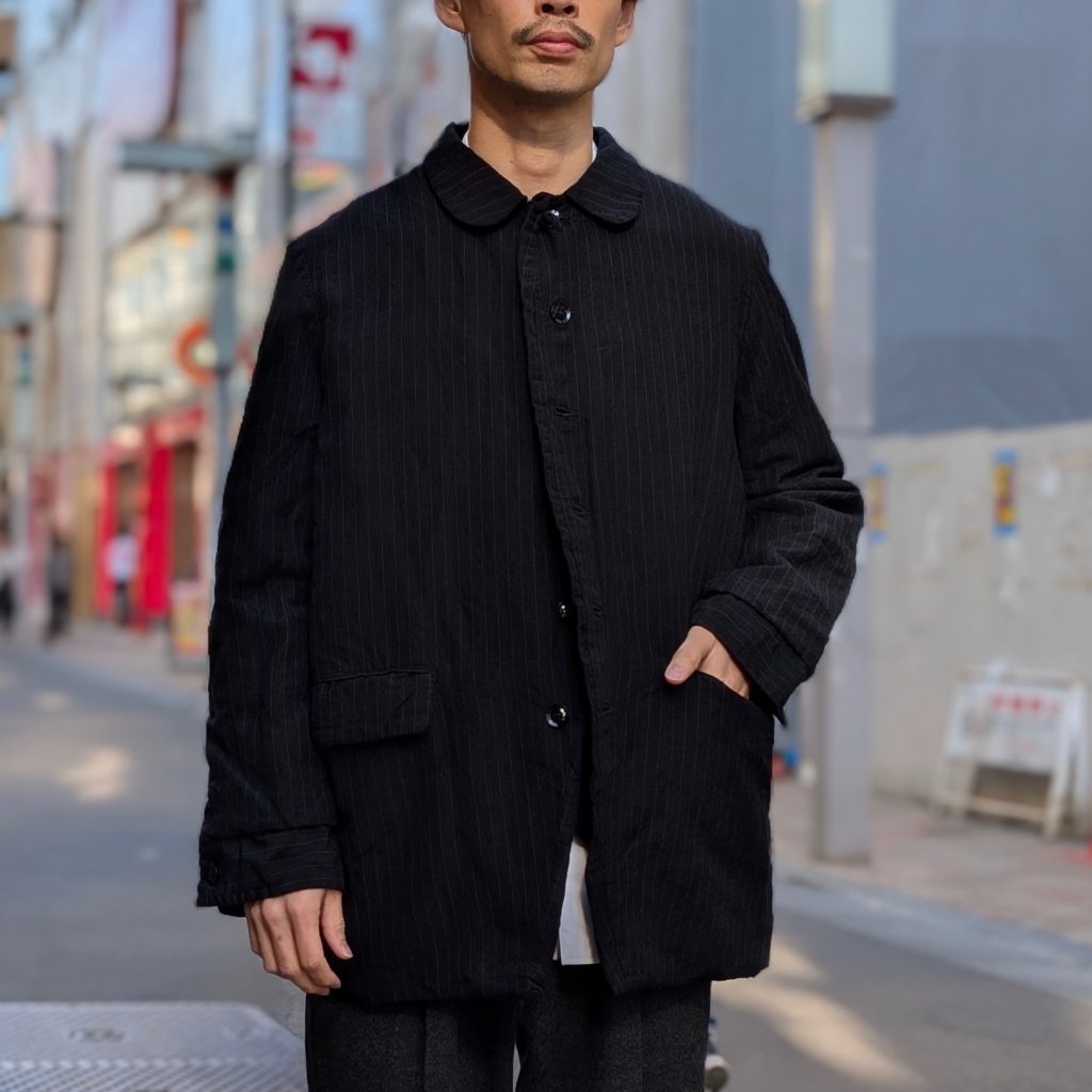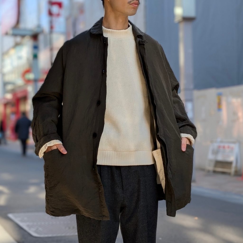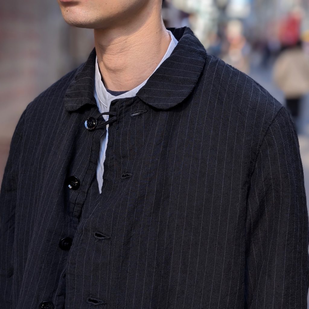 行商人が着ていたコートをデザインソースとした、小ぶりな襟が特徴的なコート。