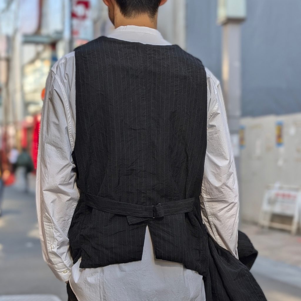 ウェストにはフラップポケット、内側にも両胸にポケットが付いています。