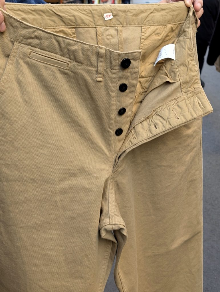 US ARMYの野暮ったいチノも、極上の生地を使いOUTILに掛かれば、上品な印象さえ受けます。
