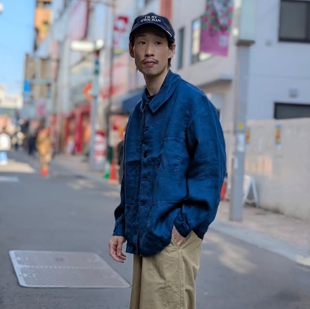 実際の生地感はプルプルしたラミーで、古着など近年物のインクブルーなどと違ったインディゴならではの、とても良い色合いです!