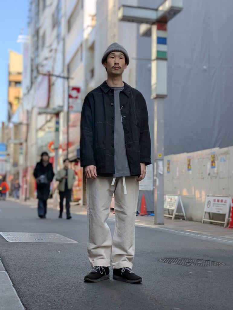 身幅やアームホールはやや広めですが、袖幅は手先にかけてシャープしているので、メリハリのあるバランスです。