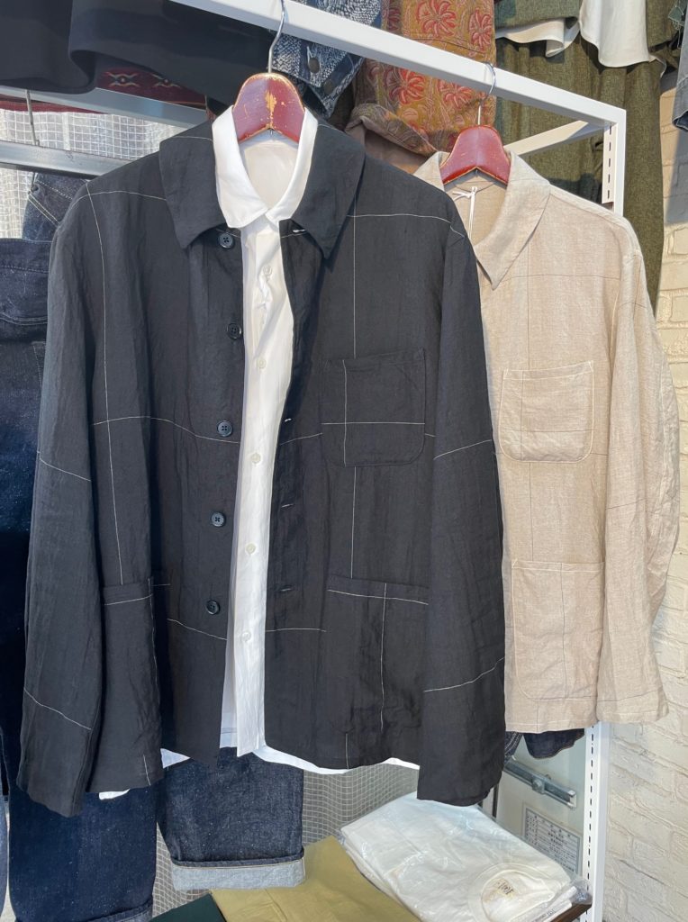 生地は清涼感のあるリネン100%をウォッシュドした、羽織るだけで雰囲気のでる仕上がりです。