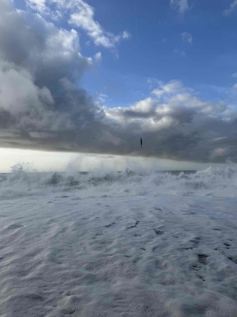 海が荒れすぎてて釣りにならなかったです。