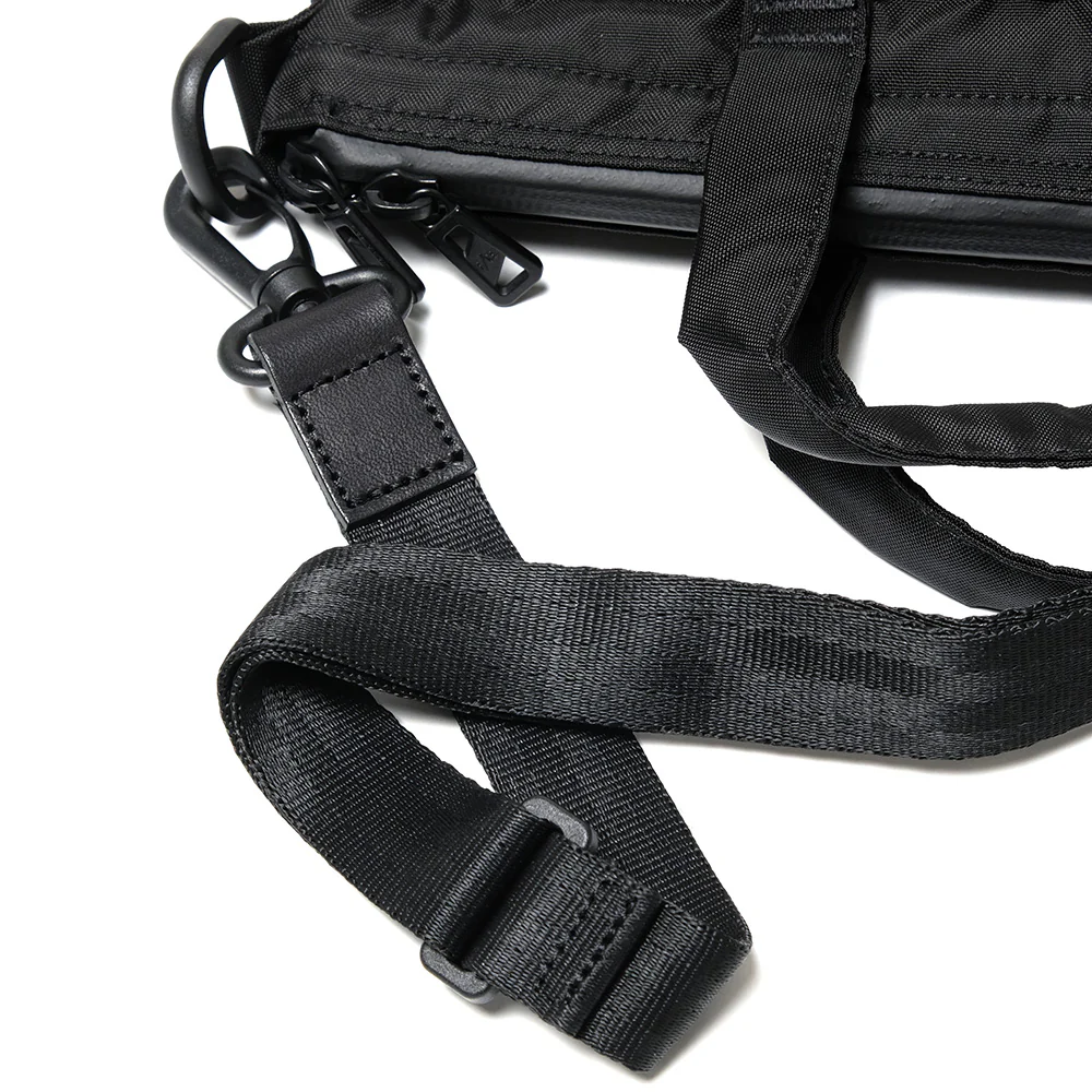 フロントのジッパーで、ポケット内に簡単にアクセス可能。ショルダーストラップは、車のシートベルト素材のウエビングテープを使用。