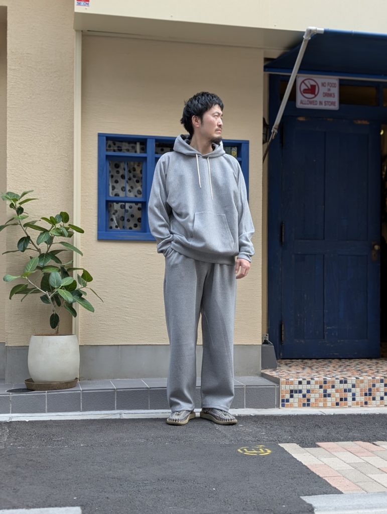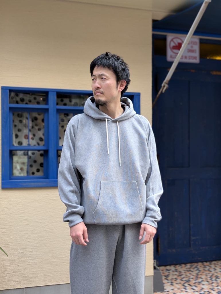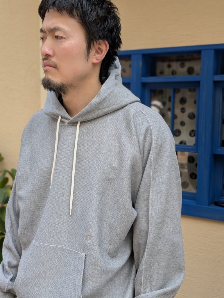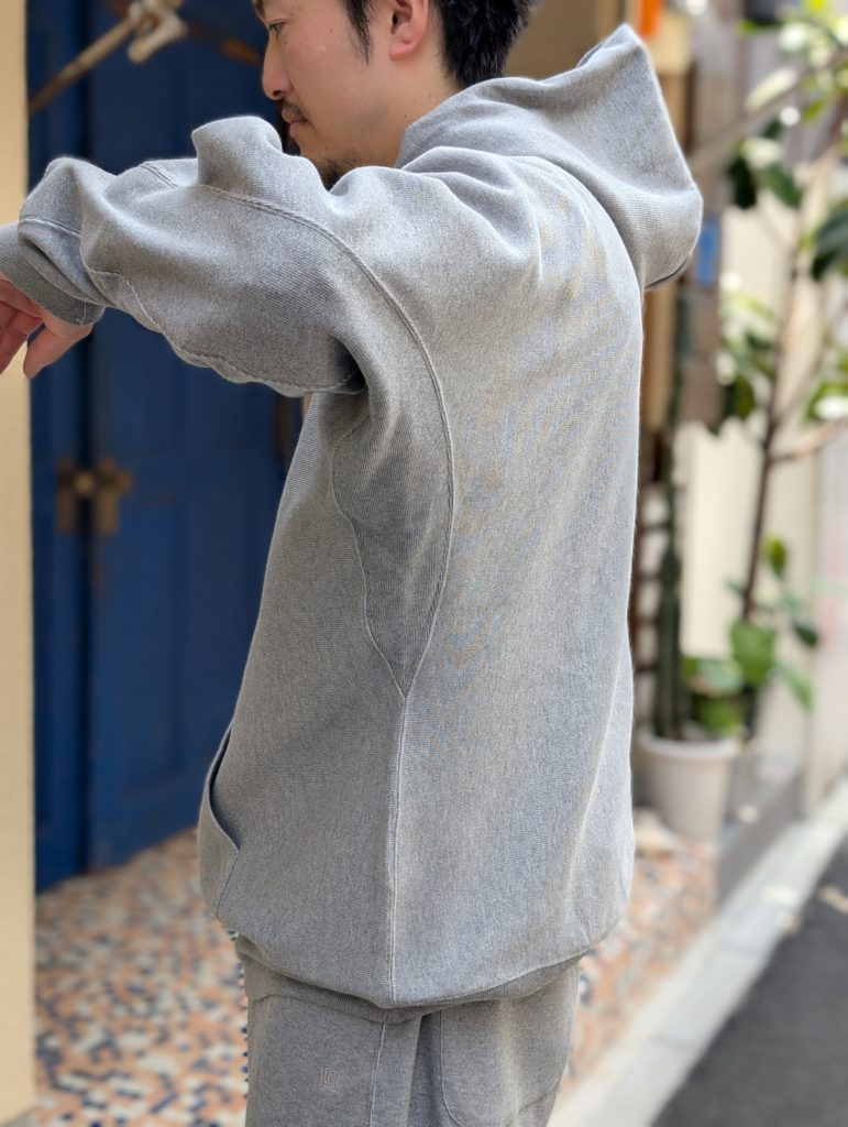 オリジナルダブルフェイス素材を使用したフーデッドスウェット。