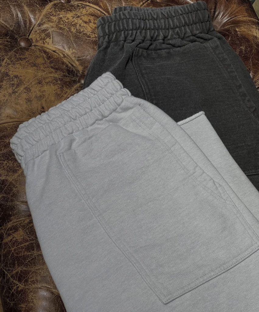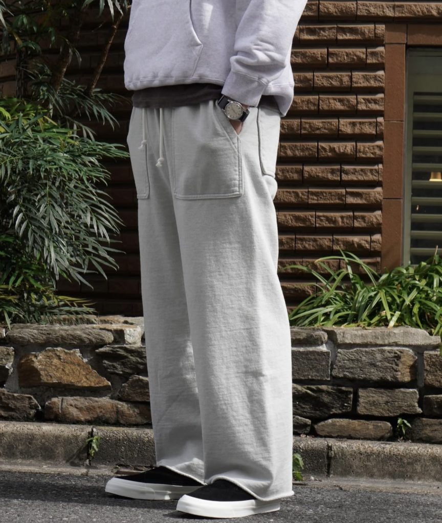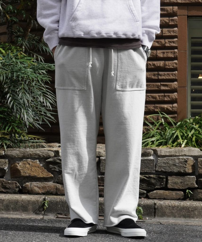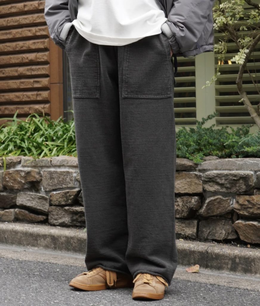 ファティーグパンツのようなL字型ポケットがを惹くデザインで形はゆとりのあるストレートシルエット。