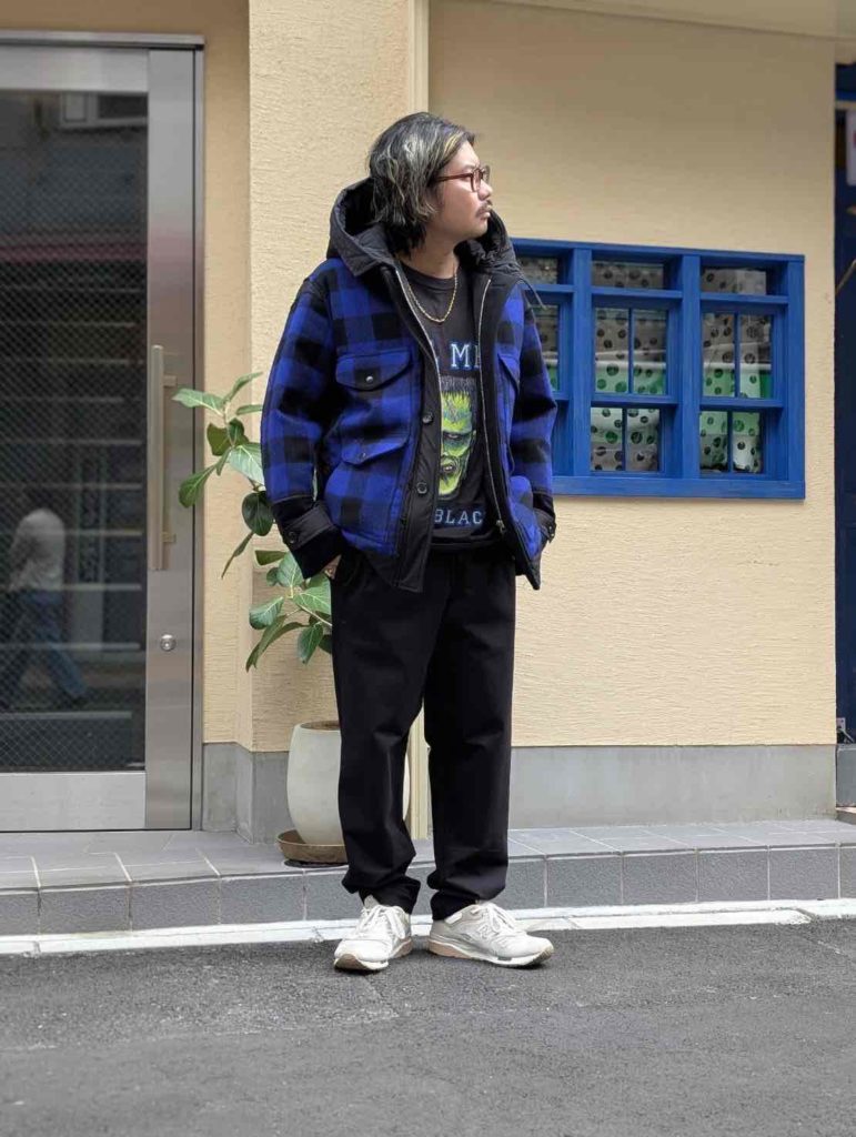 FILSON(フィルソン)は寒冷地やハードな環境に耐えるよう設計されたクラシックなウールジャケットですが、青黒の配色&フード付きで、ストリート感も感じさせるルックス。