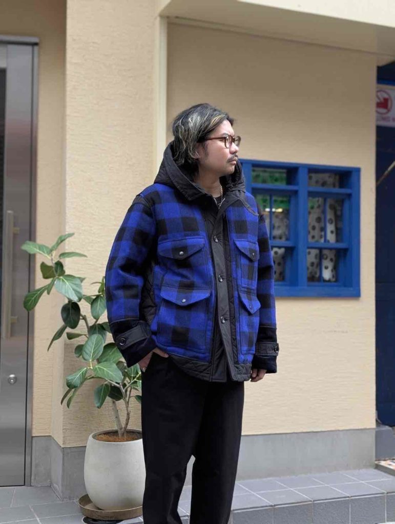 FILSON(フィルソン)は寒冷地やハードな環境に耐えるよう設計されたクラシックなウールジャケットですが、青黒の配色&フード付きで、ストリート感も感じさせるルックス。