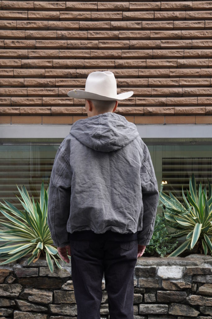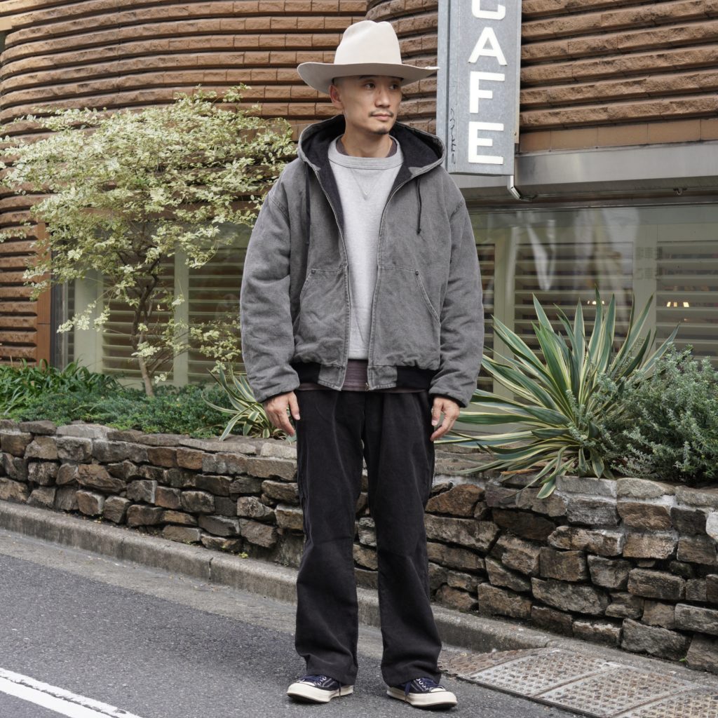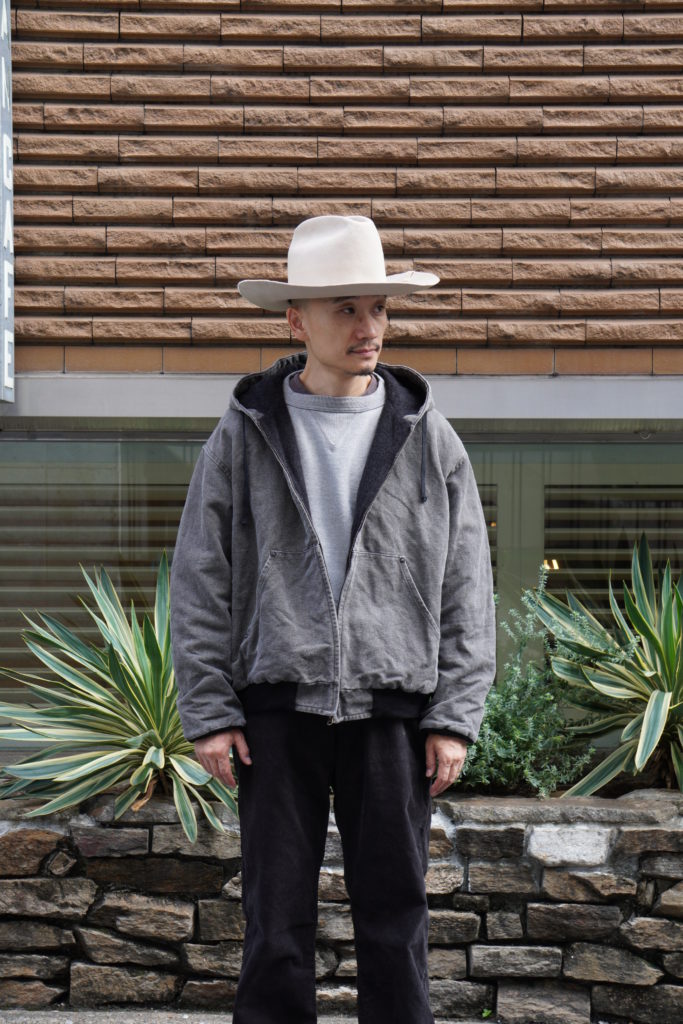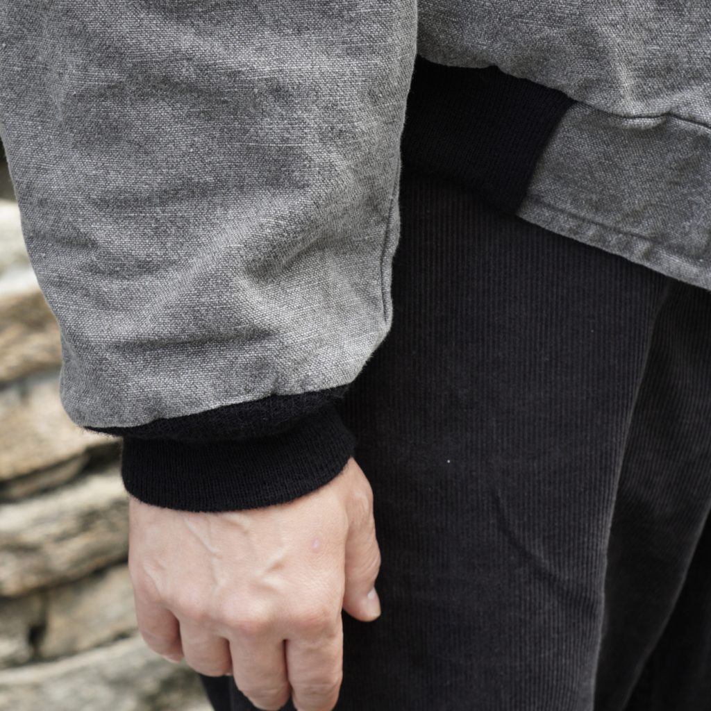 タテ糸にコットン、ヨコ糸にヘンプの太番手を使用し、高密度に織ったヘビー・オックスフォード(Cotton54% Hemp46%)。保温性の高いWool Liningを使用。