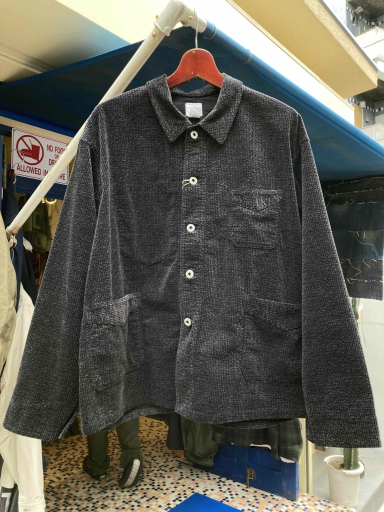 今回のバージョン2では、フレンチタイプのカバーオールとしては少しシャープな襟型や、やや短めの着丈にボックス型シルエットへとアップデート。