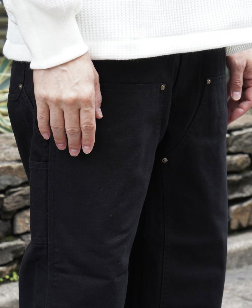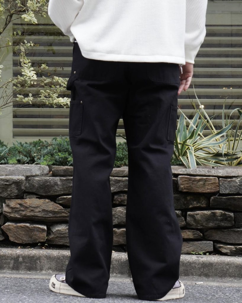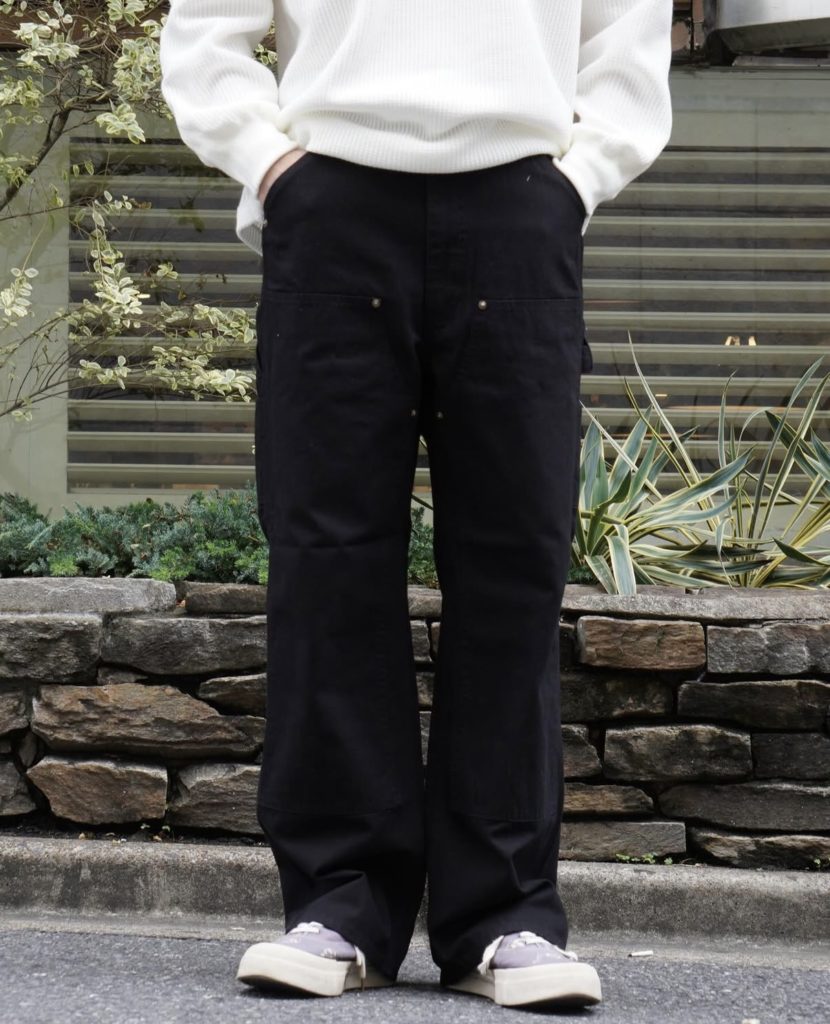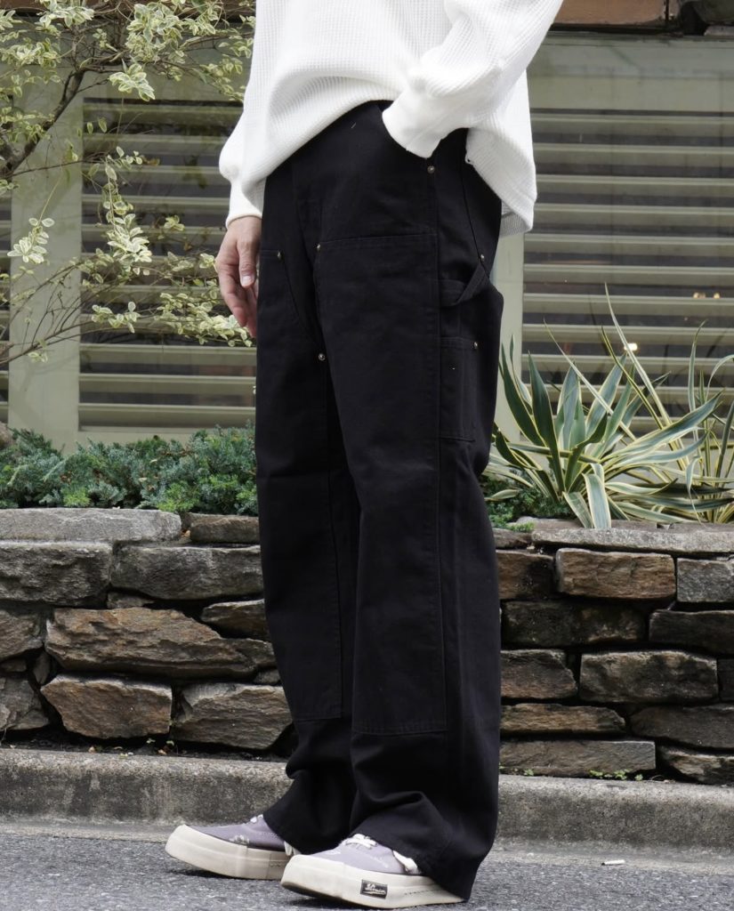 力強いワイドストレートシルエットに、工具などを収納するポケットやダブルニー仕様などオーセンティックなデザインのペインターパンツ。