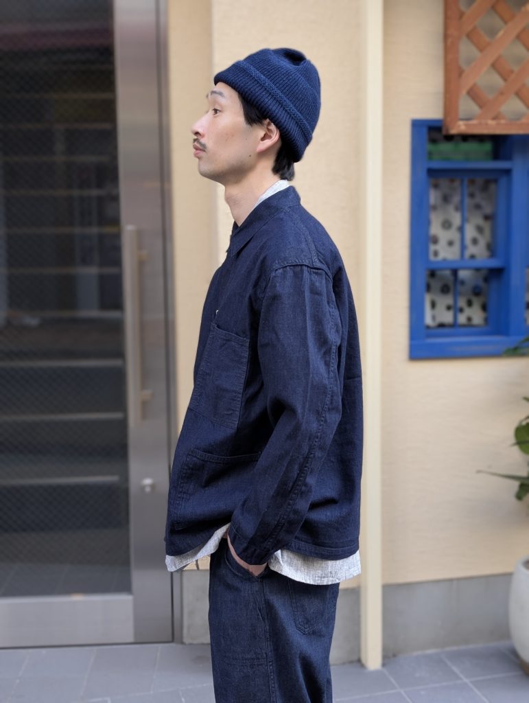着込むほどに味わいが増すダークインディゴの色味と、デニム特有の経年変化が楽しめる一着です。