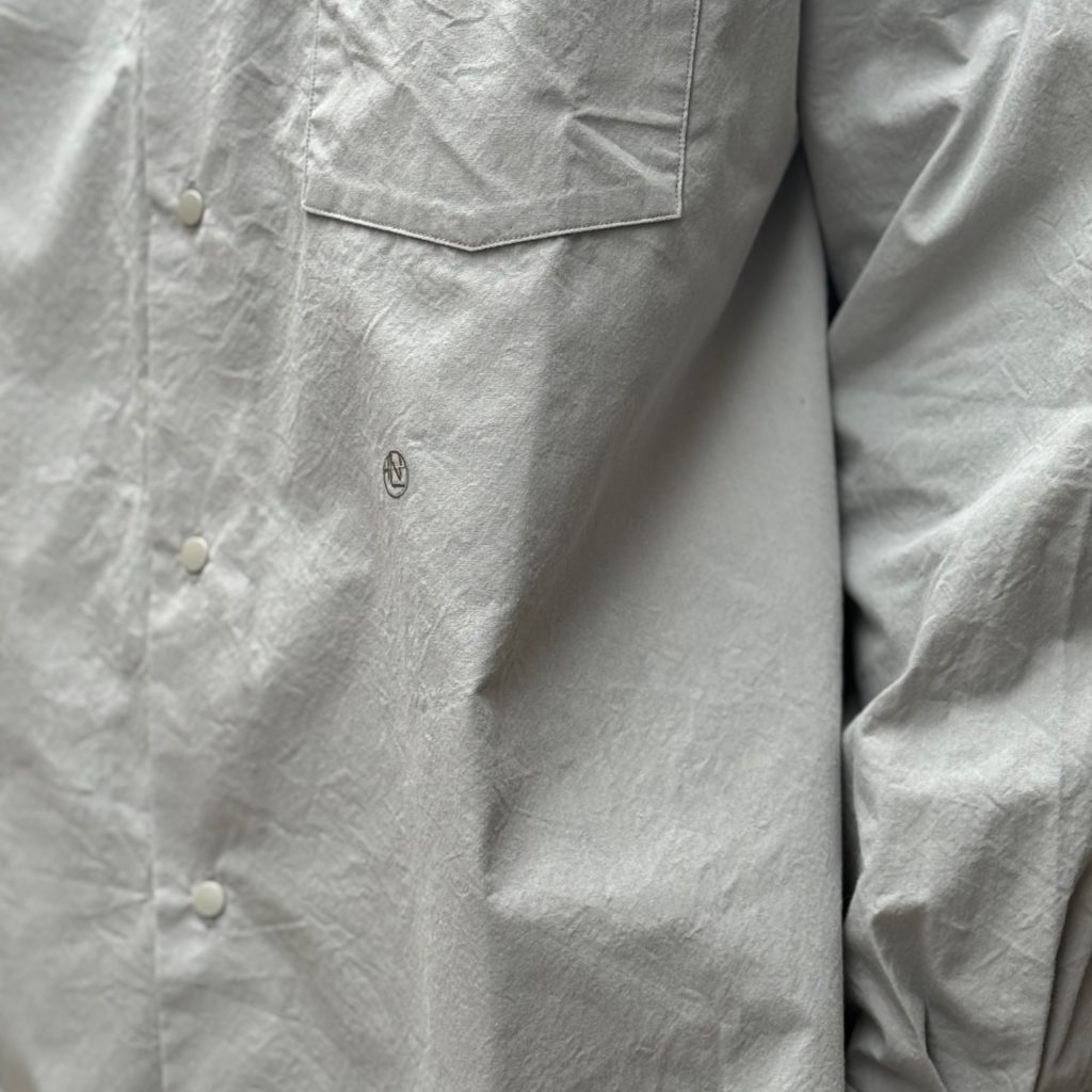 ポリエステルの芯をオーガニックコットンで覆った2層構造のカバーリングコアヤーンを使用し、高密度に織り上げたブロードクロスで作られたシャツ。
