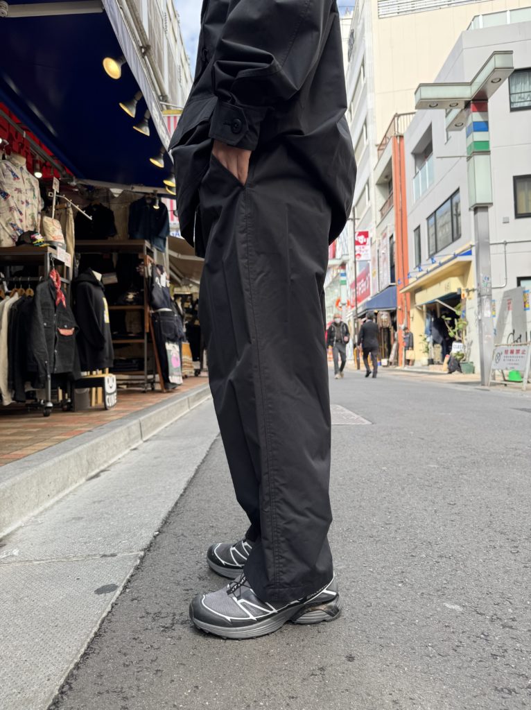 ワタリにゆとりを持たせつつ、裾にかけて自然に落ちるシルエット。