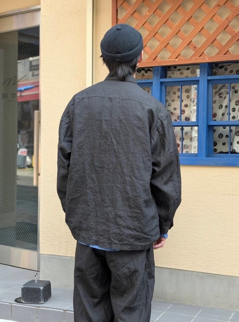 ポータークラシックの定番アイテム“FARMER’S LINEN“シリーズから、墨染めした後にブラウン染めを施したミリタリージャケットが入荷しました。
