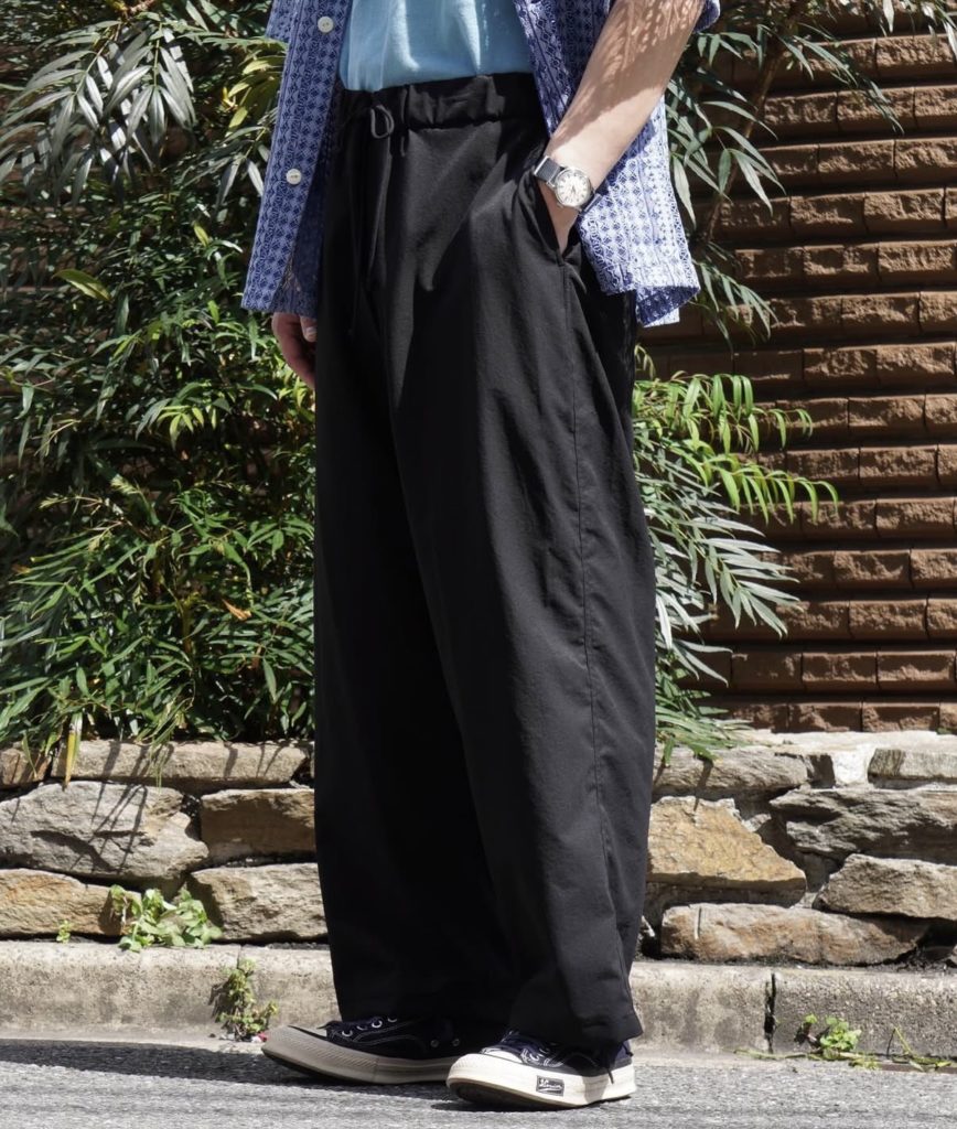 ブランドの初期から展開する定番素材を使用したイージーパンツ。